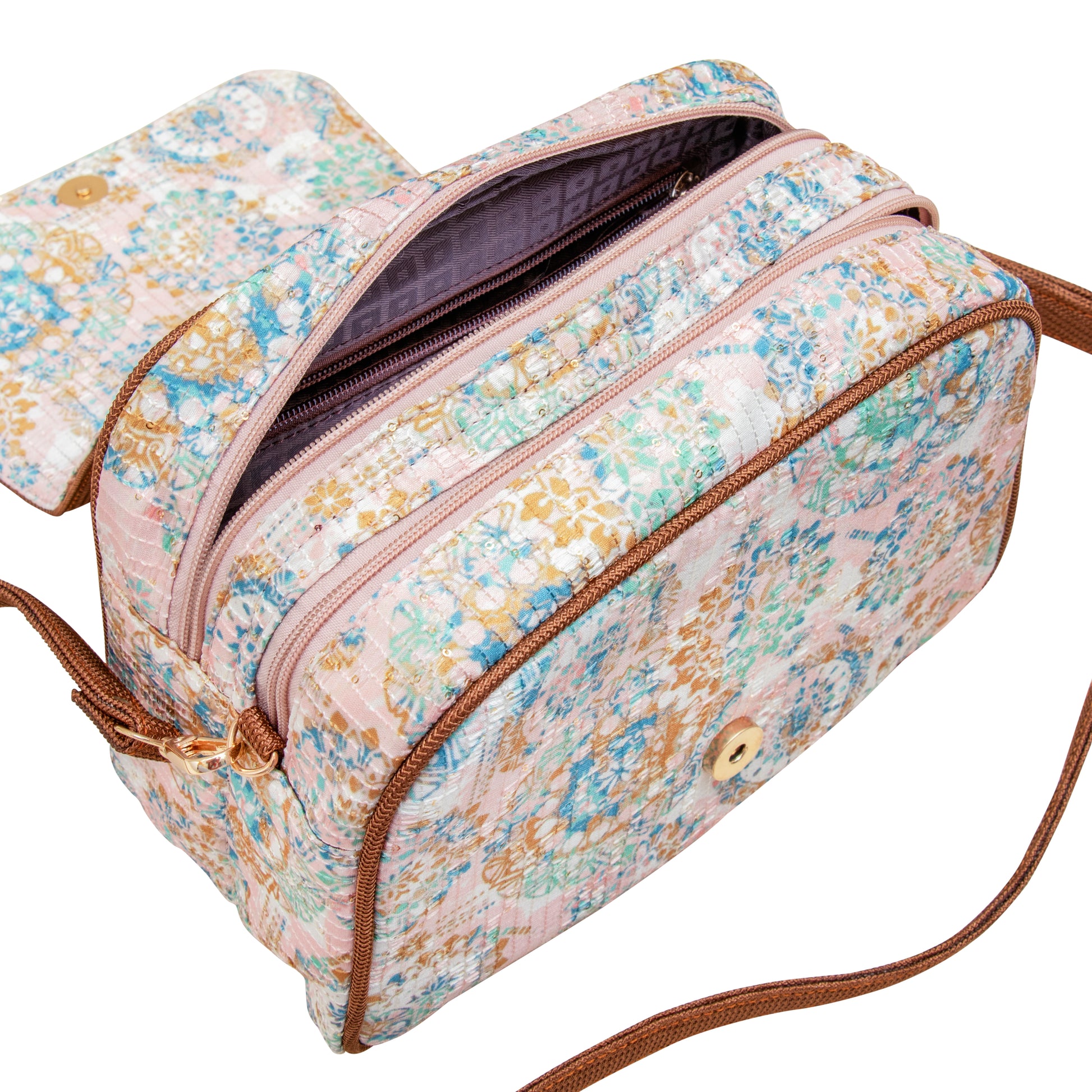 Spacious, Stylish and comfortable Double Flap Sling with 2 compartments and additional pockets inside.