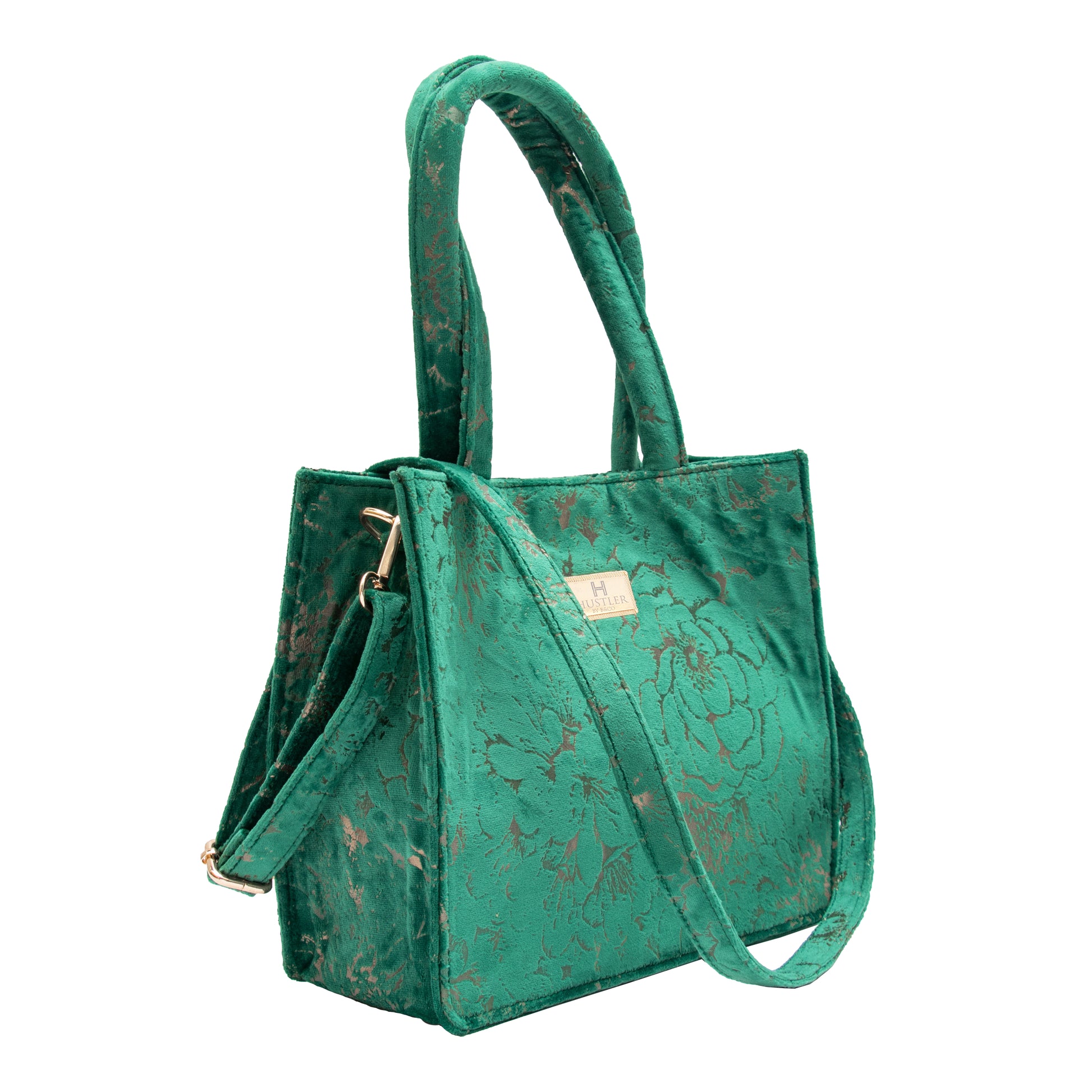 The Mini Hustler Green Rose Tote combines style and functionality with a detachable sling, magnetic closure, and thoughtful interior pockets for your essentials.